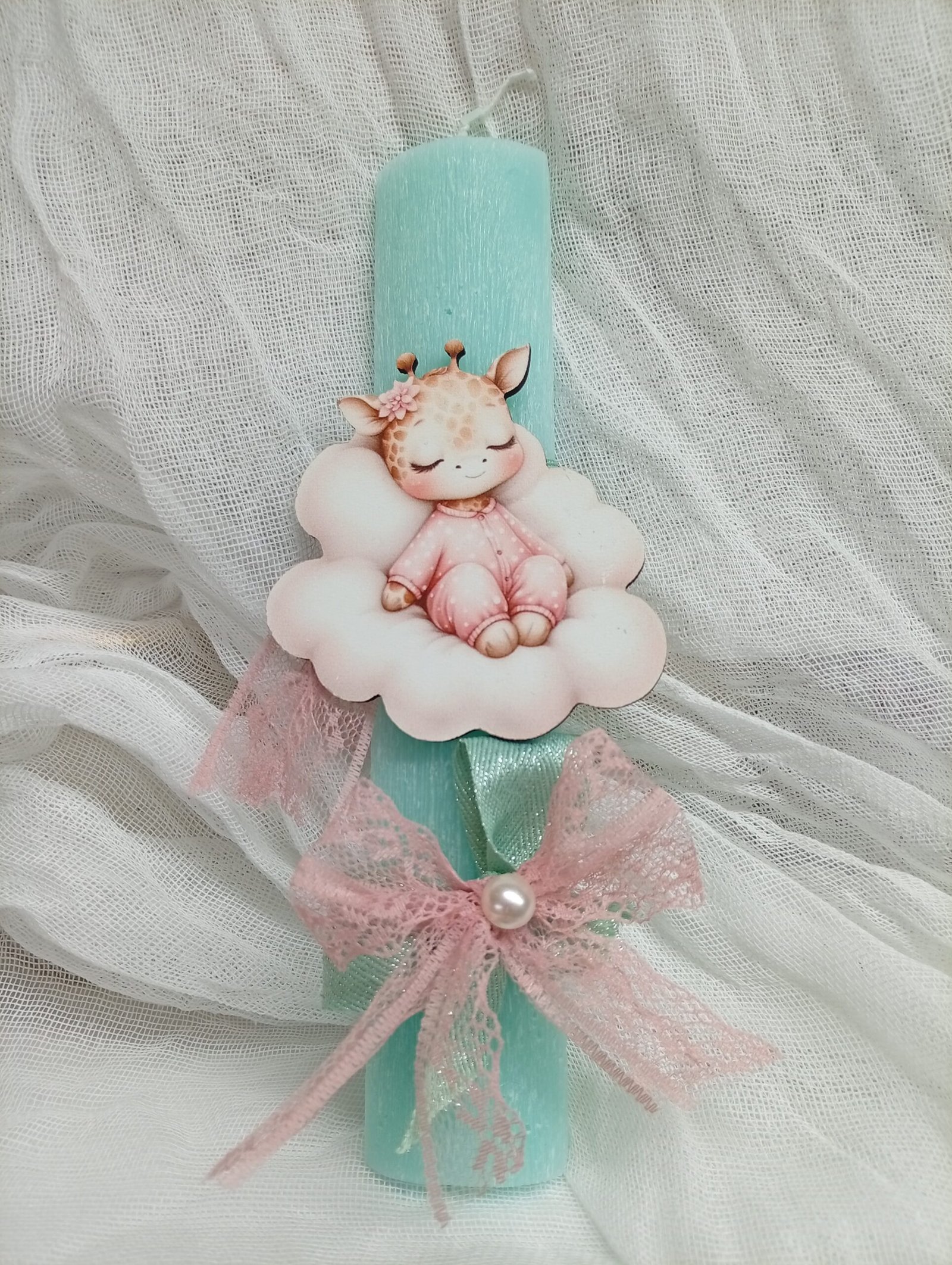 Αρωματικη πασχαλινη λαμπαδα χειροποιητη για Κοριτσι με θεμα {Συννεφακι} Αποχρωσης Βεραμαν