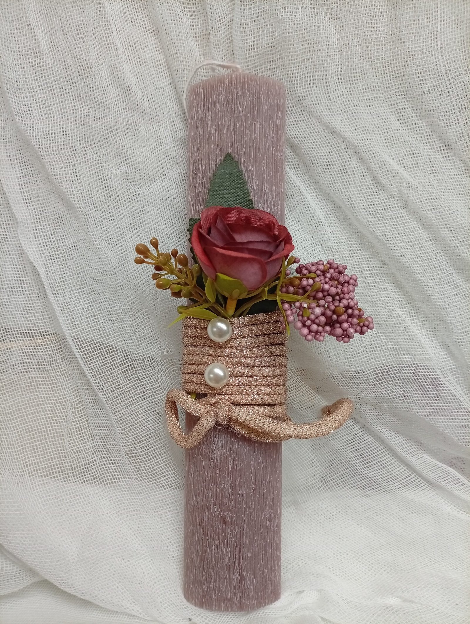 Αρωματικη πασχαλινη λαμπαδα Ρομαντικη με λουλουδακια, Σε αποχρωση της {Μοκας}