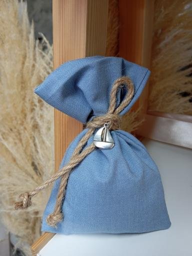 Μπομπονιέρα βαπτισης πουγκί καμβάς σε μπλε αποχρωση