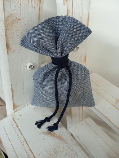 Μπομπονιέρα βάπτισης πουγκί ψαθα blue navy