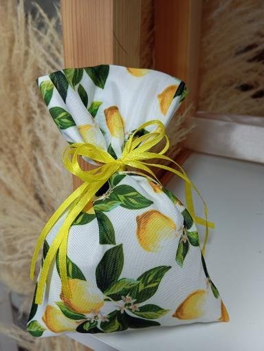 Μπομπονιέρα βαπτισης πουγκί βαμβακερό με θέμα το λεμονακι