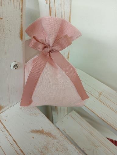 Μπομπονιέρα βάπτισης πουγκί βαμβακερό Ροζ