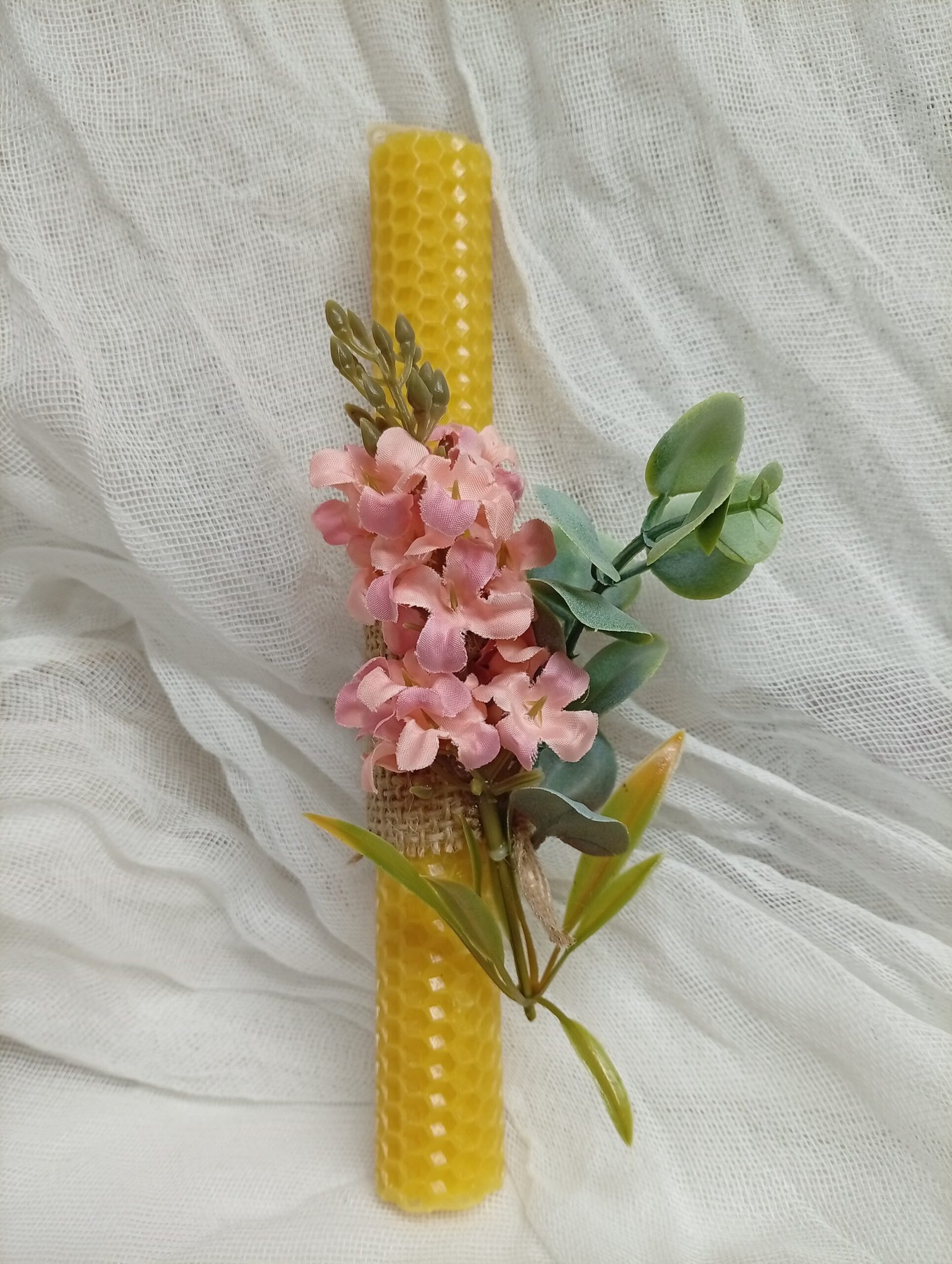 Πασχαλινη λαμπαδα κηρήθρας Ρομαντικη σε {Φυσικη Αποχρωση}