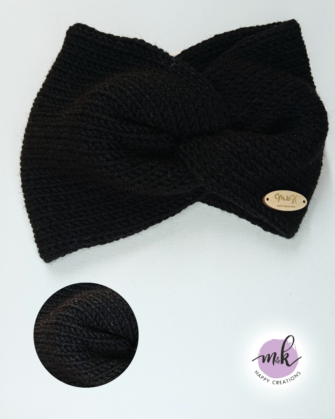 Χειροποίητη πλεκτή κορδέλα για τα μαλλιά σε μαύρο απόχρωση, Ζεστή, μαλακή και ελαστική — ιδανική για τους χειμερινούς μήνες ή ως στιλάτο δώρο.