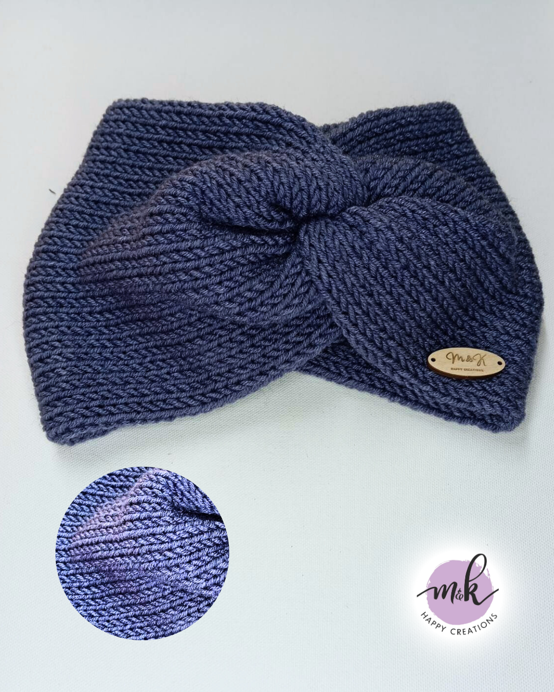 Χειροποίητη πλεκτή κορδέλα για τα μαλλιά σε σκούρη μπλε απόχρωση, Ζεστή, μαλακή και ελαστική — ιδανική για τους χειμερινούς μήνες ή ως στιλάτο δώρο.