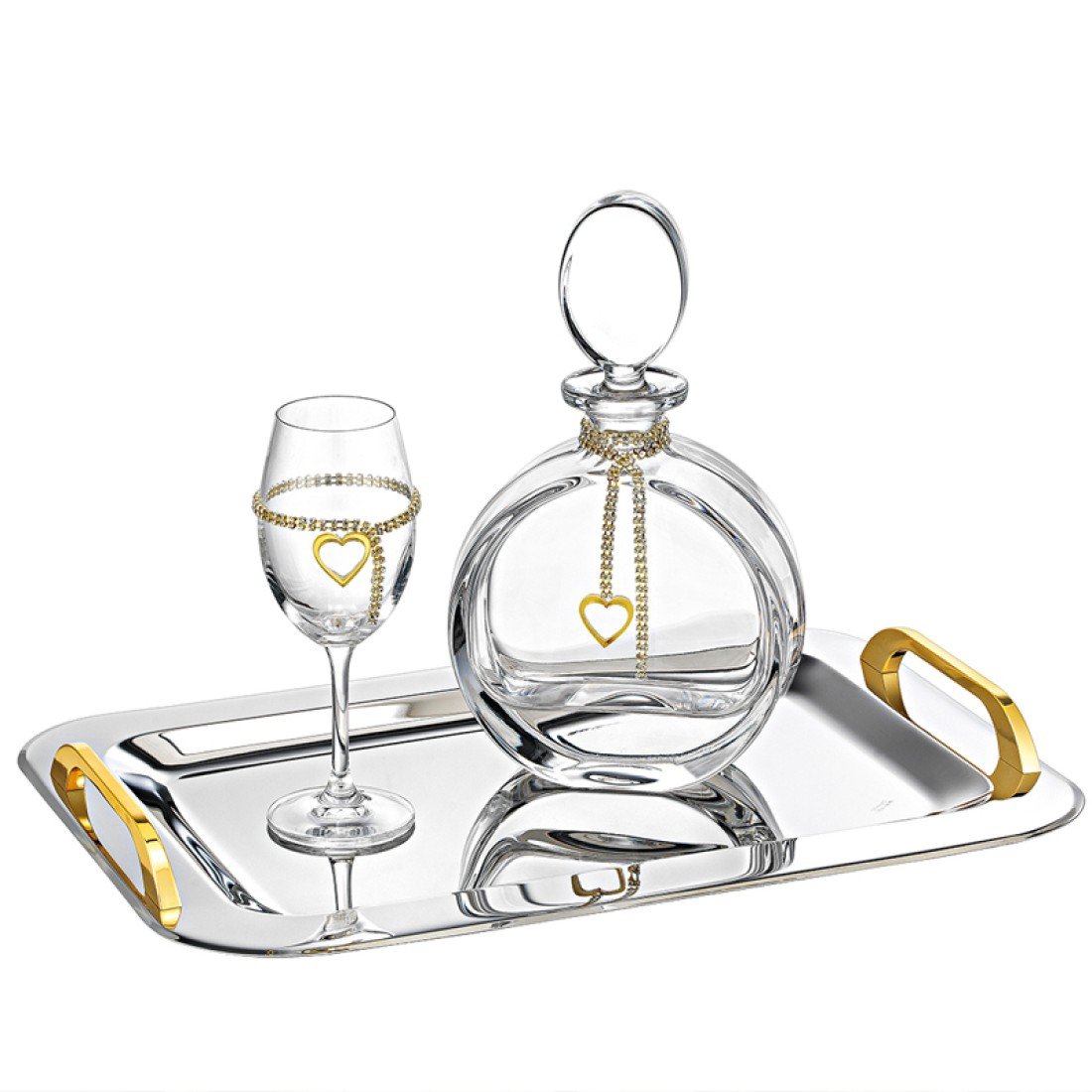 Σετ Γάμου -gold- ( Δίσκος Καράφα ποτήρι)